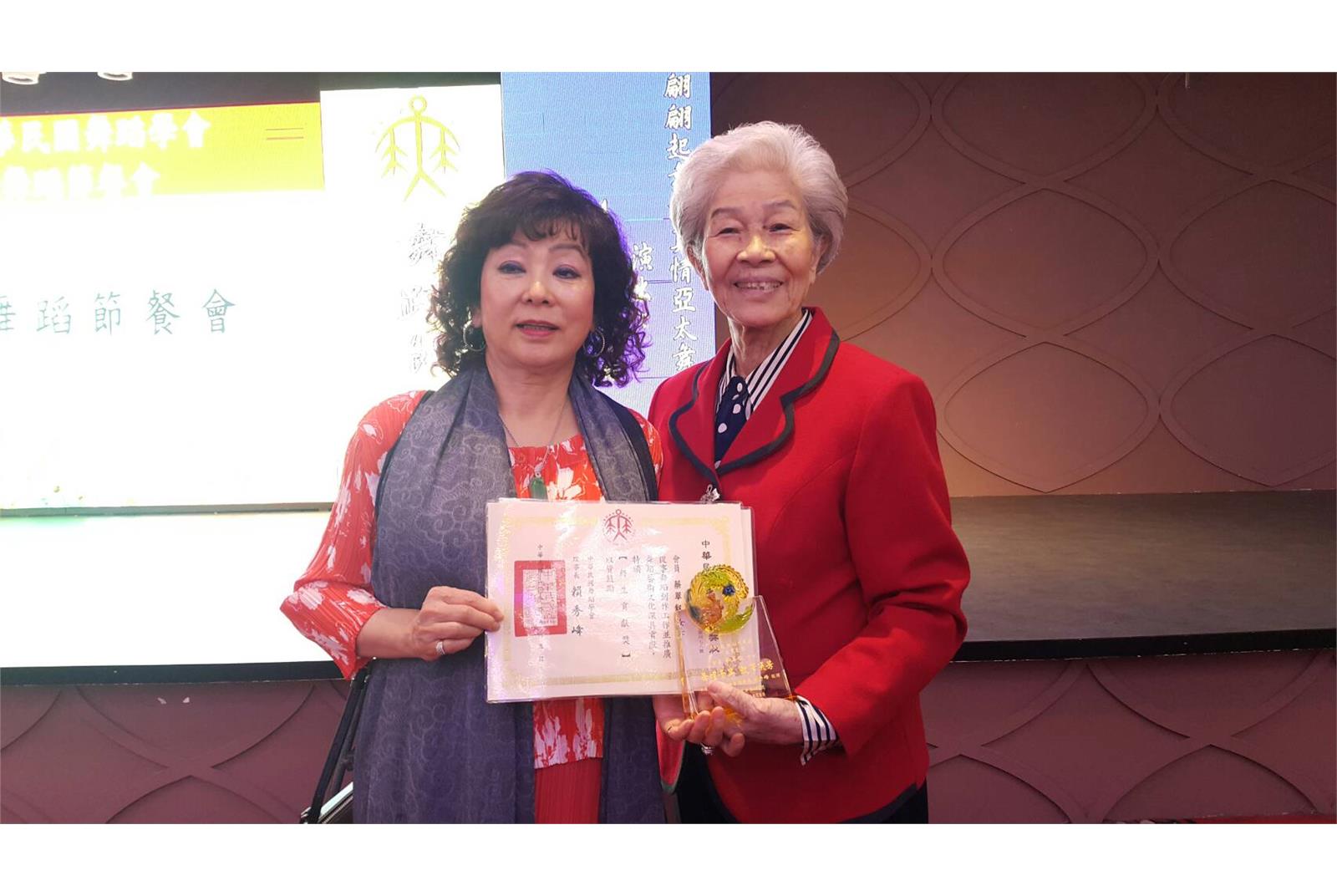 蔡翠釵(圖右)獲頒飛鳳獎「終生貢獻獎」殊榮,他奉獻舞蹈教學超過一甲子,實至名歸。